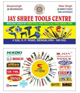 JAY SHREE TOOLS CENTER Bengaluru, Karnataka Heer Singh 9886172223 Save Contact Phone-alt Whatsapp Envelope Map-marked-alt Phone-alt Whatsapp Envelope Map-marker-alt 9886172223 9886172223 jayshreetoolscenterbanglore@gmail.com no 5 shop, 1, Jamedar Mohammed Ghouse Ln, S.P Road Cross, Kumbarpet, Dodpete, Nagarathpete, Bengaluru, Karnataka 560002 Profile Impressions Total Views Click here to Share Send POWER TOOLS SERVICE STATION TOOLS Agricultural Tools PHOTOSPNEUMATIC TOOLS SOAC TOOLS HAND TOOLS BOSCH TOOLS DEWALT TOOLS SUPER TEESTARELL TOOLS DONG CHENG TOOLS SECOND TOOLS EPILOTE TOOLS KISANKRAFT TOOLS FORTUNEAGRO TOOLS Share