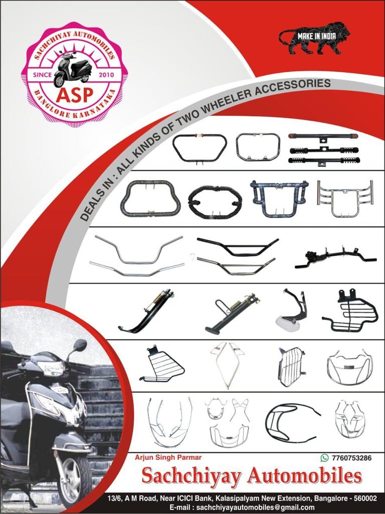 All kinds of Two Wheeler Spare Parts, Accessories